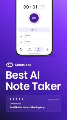 MeetGeek एक बहुमुखी नोट-टेकिंग समाधान है जो मीटिंग ऑटोमेशन के लिए डिज़ाइन किया गया है। यह आपको ऑडियो रिकॉर्ड करने और AI-जनरेटेड सारांश प्राप्त करने में मदद करने के लिए कई प्लेटफार्मों पर उपयोग किया जा सकता है। आप ज़ूम, गूगल मीट और माइक्रोसॉफ्ट टीम्स जैसे प्रमुख वीडियो कॉलिंग ऐप्स पर आयोजित मीटिंग्स में भाषण को आसानी से टेक्स्ट में ट्रांसक्राइब कर सकते हैं, नोट्स ले सकते हैं और सारांश प्राप्त कर सकते हैं। यह ऐप 50 से अधिक भाषाओं का समर्थन करता है, जिनमें हिंदी भी शामिल है, जिससे यह वैश्विक उपयोगकर्ताओं के लिए एक शक्तिशाली उपकरण बन जाता है।