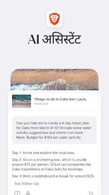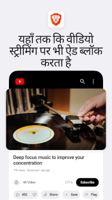 Brave ब्राउज़र आपको 3X तेज़ ब्राउज़िंग का अनुभव देता है। यह AI, Adblock और VPN के साथ एक सुरक्षित, तेज़ और निजी वेब ब्राउज़र है, जो आपकी ऑनलाइन सुरक्षा और गोपनीयता सुनिश्चित करता है।