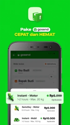 क्या आपको कहीं जल्दी पहुँचना है? Gojek का GoRide आपको फुर्ती से मंज़िल तक पहुँचाएगा, वहीं GoCar अतिरिक्त आराम के साथ यात्रा का अनुभव प्रदान करता है। दोस्तों के साथ पसंदीदा पकवानों का स्वाद लेना चाहते हैं? GoFood पर अनगिनत स्वादिष्ट विकल्पों में से चुनें और घर बैठे आनंद लें। तत्काल सामान भेजने की आवश्यकता है? GoSend के साथ, आपके पार्सल बीमा सुरक्षा के साथ समय पर और सुरक्षित रूप से पहुँचेंगे।
