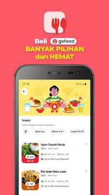 Gojek - Transportasi & Makanan ऐप के साथ अपने रोज़मर्रा के कामों को व्यावहारिक और किफ़ायती बनाएं। यात्रा, पसंदीदा भोजन मंगवाने, सामान भेजने और तुरंत किराने का सामान खरीदने जैसी विविध सेवाओं का आनंद लें। यह आपकी सभी दैनिक ज़रूरतों को आसानी से पूरा करता है।