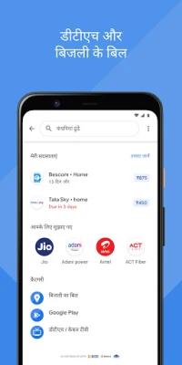 अपने दैनिक बिलों का भुगतान अब पहले से कहीं ज़्यादा आसान हो गया है। बिजली, पानी, ब्रॉडबैंड, डीटीएच या FASTag रिचार्ज हो, Google Pay आपको समय पर याद दिलाता है और त्वरित भुगतान की सुविधा देता है। अपने मोबाइल को आसानी से रीचार्ज करें और नवीनतम प्रीपेड प्लान देखें। आस-पास की दुकानों पर QR कोड स्कैन करके तुरंत भुगतान करें, या खाना ऑर्डर करने, यात्रा टिकट बुक करने और ऑनलाइन खरीदारी जैसी सेवाओं के लिए सीधे Google Pay का उपयोग करें। इसके अलावा, MMTC-PAMP के साथ 24 कैरट शुद्ध सोना खरीदने, बेचने या बतौर इनाम पाने का अनूठा अवसर भी यहीं उपलब्ध है। अपने बैंक खाते की शेष राशि कभी भी, कहीं भी तुरंत जांचें, बिना बैंक जाए।