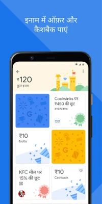 Google Pay के साथ करोड़ों भारतीयों जैसे आसानी से पेमेंट करें। यह बेहद सुरक्षित और उपयोग में आसान है। दोस्तों को रेफ़र करें और हर पेमेंट पर शानदार ऑफ़र व इनाम पाएं।