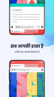 Vivaldi केवल एक ब्राउज़र से कहीं अधिक है; यह वेब पर आपकी निजता और स्वतंत्रता का एक मजबूत समर्थक है। पेज़ कैप्चर, नाइट मोड, क्यूआर कोड स्कैन, रीडर व्यू और समृद्ध लेखन वाले नोट्स जैसी कई उन्नत सुविधाएँ आपके वेब अनुभव को बढ़ाती हैं। Vivaldi को उपयोगकर्ताओं के अनुरोधों और आवश्यकताओं के आधार पर लगातार विकसित किया गया है। हम आपका पीछा नहीं करते; हमारा दृढ़ विश्वास है कि निजी और सुरक्षित सॉफ़्टवेयर एक मानक होना चाहिए। Vivaldi में, यह आपकी पसंद है कि आप इसे कैसे उपयोग करते हैं और यह कैसा दिखता है – क्योंकि यह आपका ब्राउज़र है।